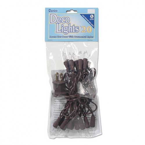 Light Set - 20 Clear Bulbs - Brown Cord - Indoor/Outdoor Use